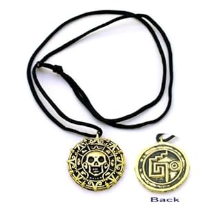 PIRATE Antique Gold Finished Metal Coin/Pendant/Necklace 1-1/2" Diameter, 3/16" thick Metal with 30" nylon neck cord